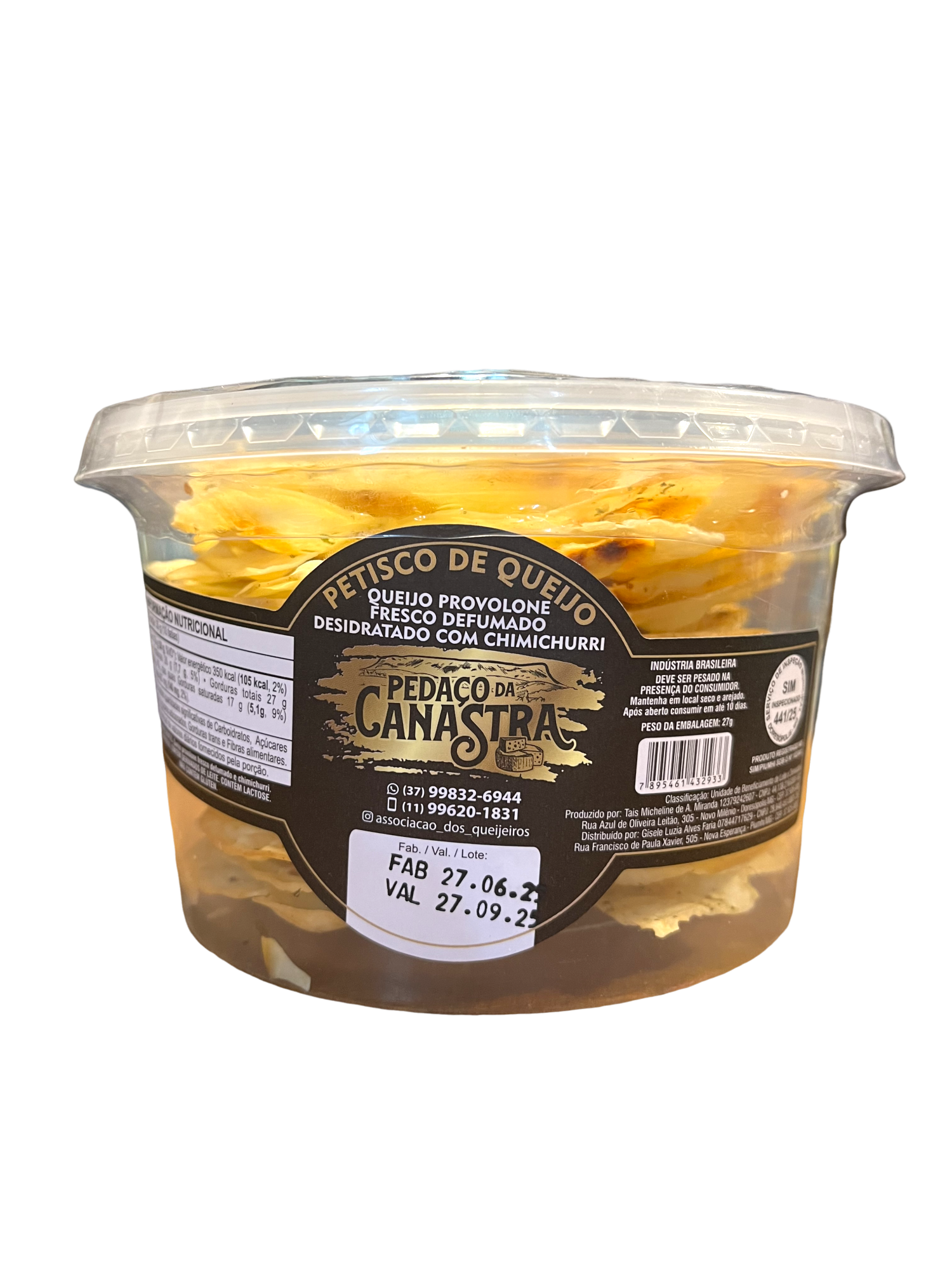 Queijo provolone desidratado de sabor intenso e textura firme, temperado com chimichurri, que agrega aroma herbal e leve toque picante. Uma combinação equilibrada e marcante, ideal para petiscos, tábuas de frios e experiências de degustação.